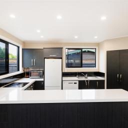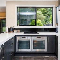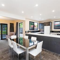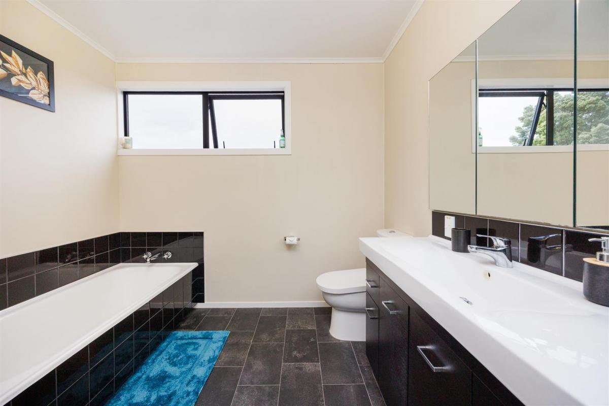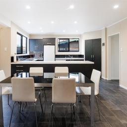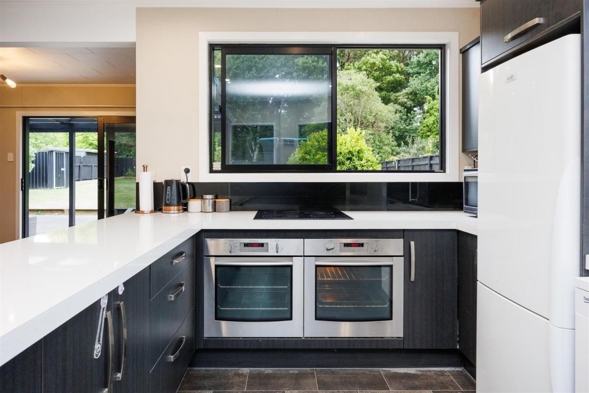 Large modern kitchen features wonderful bench space and double-glazed sliding windows. There are two underbench ovens, electric hob, dishwasher and plenty of draw and cupboard space plus a rather large corner pantry. The breakfast bar is ideal for casual dining and the dining area has extra space for your comfy relaxing furniture and maybe an office alcove too.
