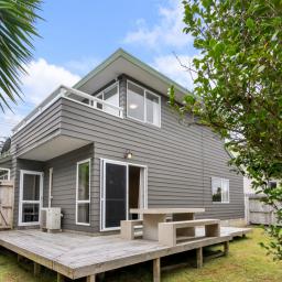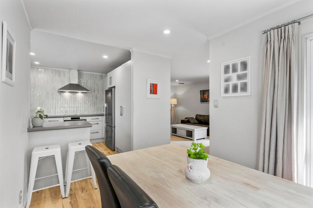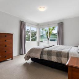 With a separate dining and kitchen, the dedicated lounge has a relaxing vibe, seamlessly flowing out to wrap around outdoor decking and a totally secure yard, private from neighbours and easily managed. The master bedroom upstairs, with its own balcony, enjoys a captivating view across Kauri Park, the inner harbour and Waitakere Ranges beyond.