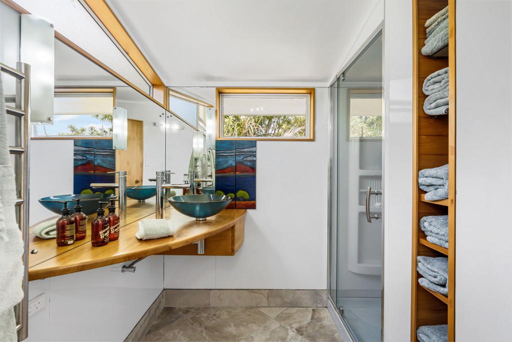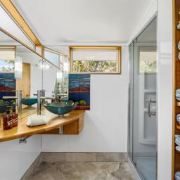 The master offers parents a tranquil retreat, with soaring ceilings sarked in native Rimu and a luxury ensuite with a "picture-postcard" window. You will treasure the harbour vista every day. 2 additional double bedrooms & a single, plus a well-appointed bathroom and separate powder room for guests. Family perfect.