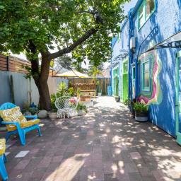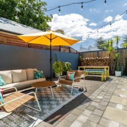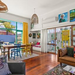 Tucked away for privacy is a sunny, north-facing courtyard. This sheltered outdoor oasis is perfect for alfresco gatherings, with two sets of French doors creating a seamless flow from the main living zone. The home is further enhanced by an office nook, a compliant woodburner, and three heat pumps for year-round comfort. Authentic native wooden floors run throughout the light-filled interior, which also offers generous storage, while off-street parking for one vehicle is provided outside.