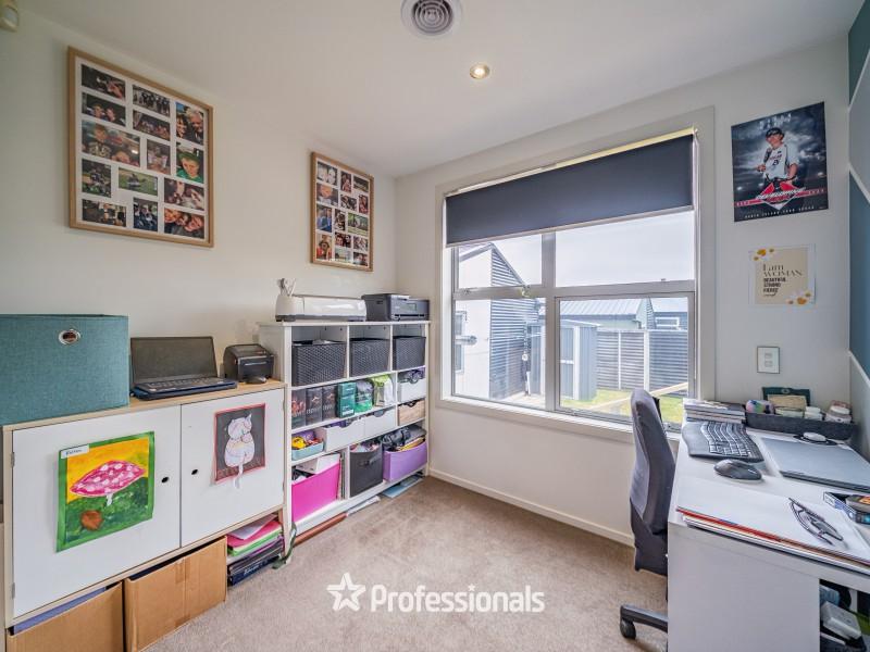 The home features four bedrooms plus a study with a full wardrobe, easily functioning as a fifth bedroom if required. A second living area, family bathroom, and master ensuite provide excellent separation and comfort for busy households. At approximately 133sqm, this is one of the largest homes within the 19-home Otonga Heights development. It also includes a fully lined double garage, which has been enjoyed as a teen hangout.
