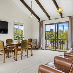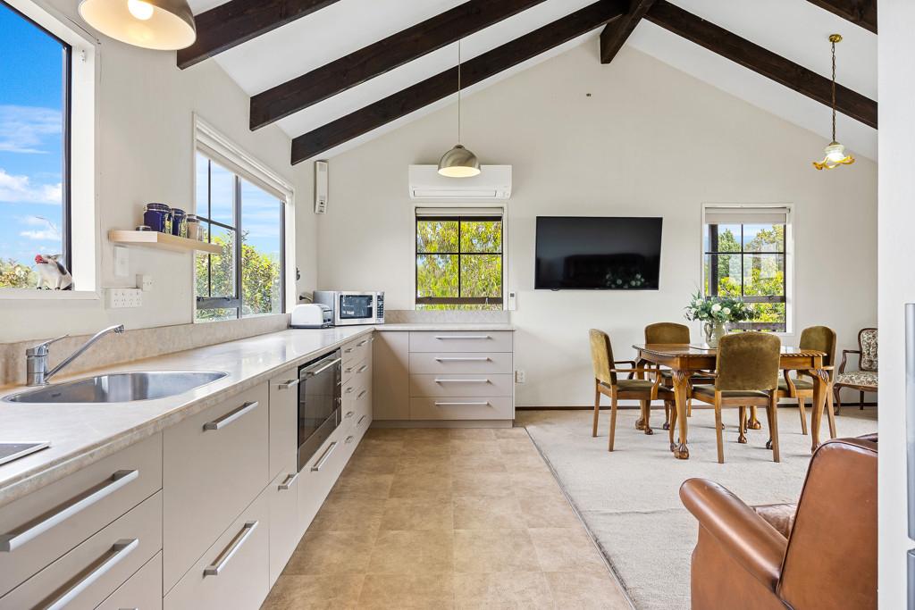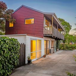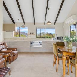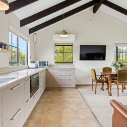 Designed over two levels, the home features two bedrooms and one bathroom, coupled with an open-plan kitchen, dining, and living area upstairs captures great light and forms the social hub of the home. Downstairs, you have two studio rooms at your disposal as well as under under-cover outdoor lounging area, creating a welcoming spot to unwind.
