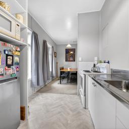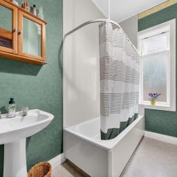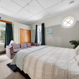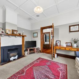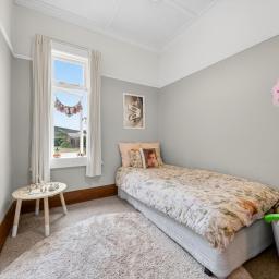 Boasting 110sqm of living space, the home features three bedrooms, a separate sunny lounge, a flowing kitchen and dining area, separate laundry, and a family bathroom. Original character features throughout, including exposed timbers, a bullseye window, large sun porch, and solid concrete walls both inside and out.