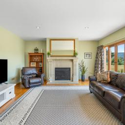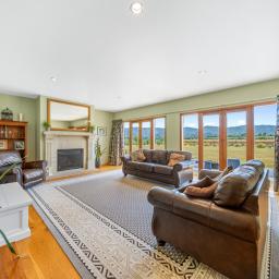 • An expansive north-facing formal lounge opening out to rolling paddocks and hills beyond, complete with a fireplace that anchors the home with warmth and character