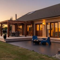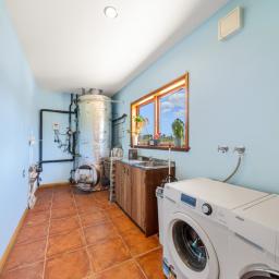 • A separate laundry housing a boiler system that provides underfloor heating throughout the home, with the option to switch between wood and solar for energy-efficient living