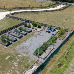 Set on 2.77 hectares of stunning, flat lifestyle land, the grounds have been lovingly established with poplars lining the boundaries, alongside an abundance of fruit trees, vegetables and herbs flourishing in raised garden beds.