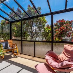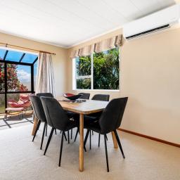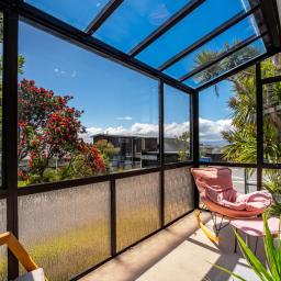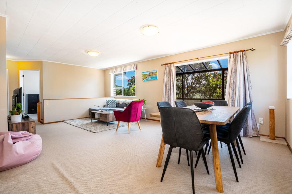 Dual street access offers flexibility, with entry via the covered carport or the single internal-access garage. The generous open-plan kitchen, dining and living area is warmed by a heat pump for year-round comfort and flows beautifully to a sun-soaked conservatory - the ideal spot for an afternoon coffee and a good book while taking in the lovely outlook across the rolling hills to the north or the harbour to east.