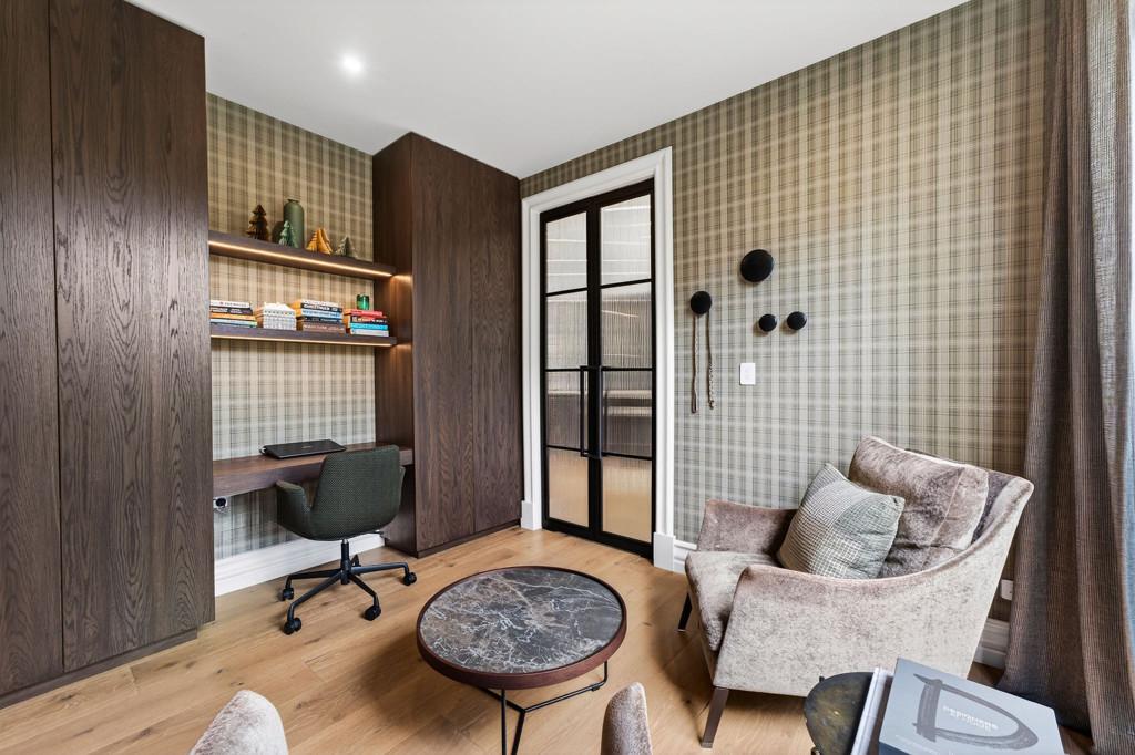 Reimagined from top to toe, every surface has been curated with intent. Wide American oak floors flow beneath bespoke joinery, while Elitis French wallpapers and designer finishes create a richly tactile, visually sophisticated interior.