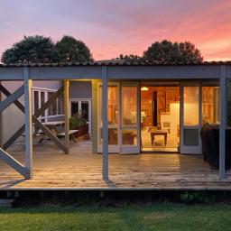 Designed in the 1980s by celebrated architect James Hackshaw of the iconic Group Architects, this distinctive U-shaped, double-unit bach is a rare piece of architectural history. Hackshaw himself considered it one of his finest works—designed for an effortless, easy-living lifestyle perfect for long summer days at the beach, where relaxing, socialising, and entertaining take centre stage.