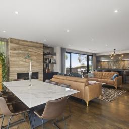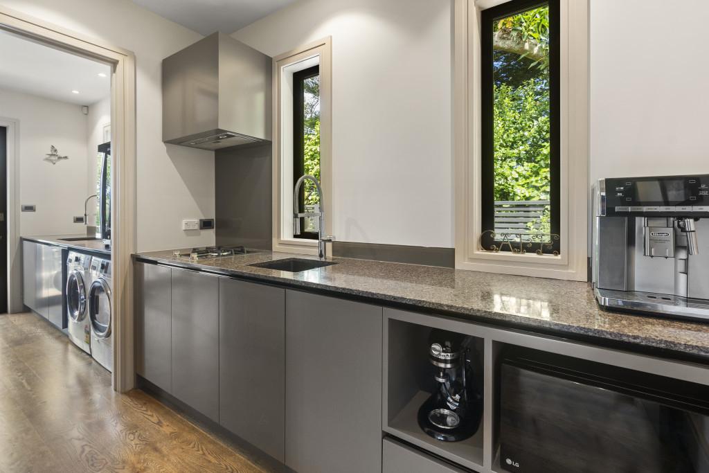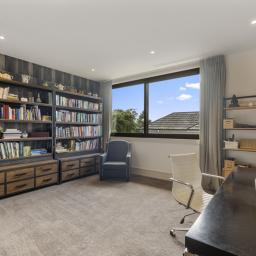 • The principal living level forms the core of the home. Soaring ceilings and a sculptural staircase lead to expansive living and dining spaces, anchored by a gas fireplace and a meticulously detailed kitchen with walk-through scullery. A second master suite on this level includes a walk-through wardrobe and ensuite, ideal for parents, guests or long-term family stays.