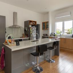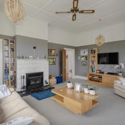 Three well-proportioned bedrooms, each with built-in wardrobes. The master suite is a standout, complete with a walk-in wardrobe and ensuite. One of the additional bedrooms enjoys exclusive access to a decked seating area, great for quiet morning coffees or evening relaxation. Comfort is assured year-round with a wood burner providing cosy ambience on cooler days, complemented by a heat pump for efficient heating and cooling.