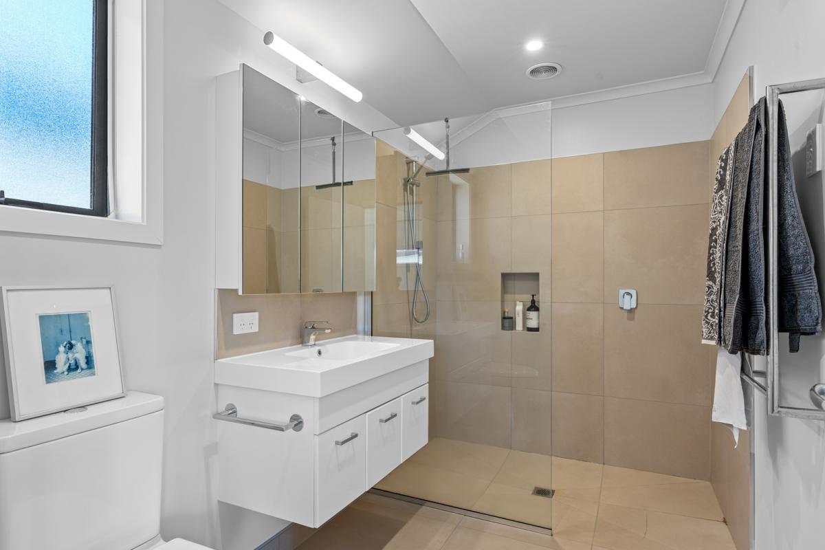 • Modern streamlined kitchen with great storage, breakfast bar and walk-in pantry