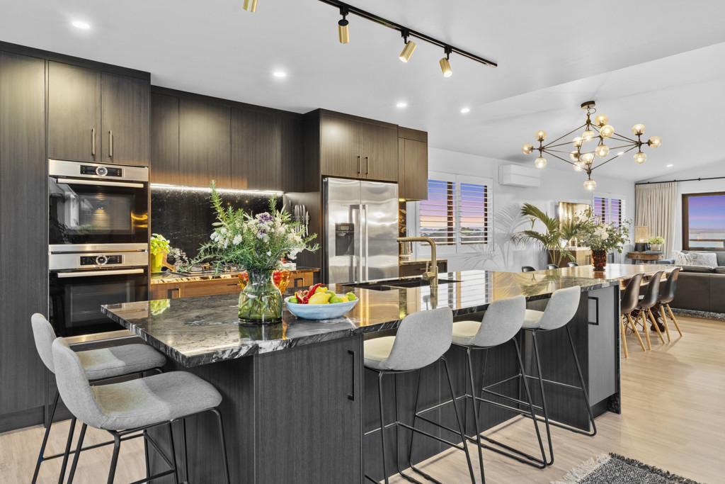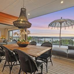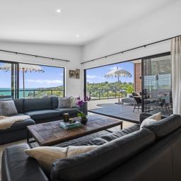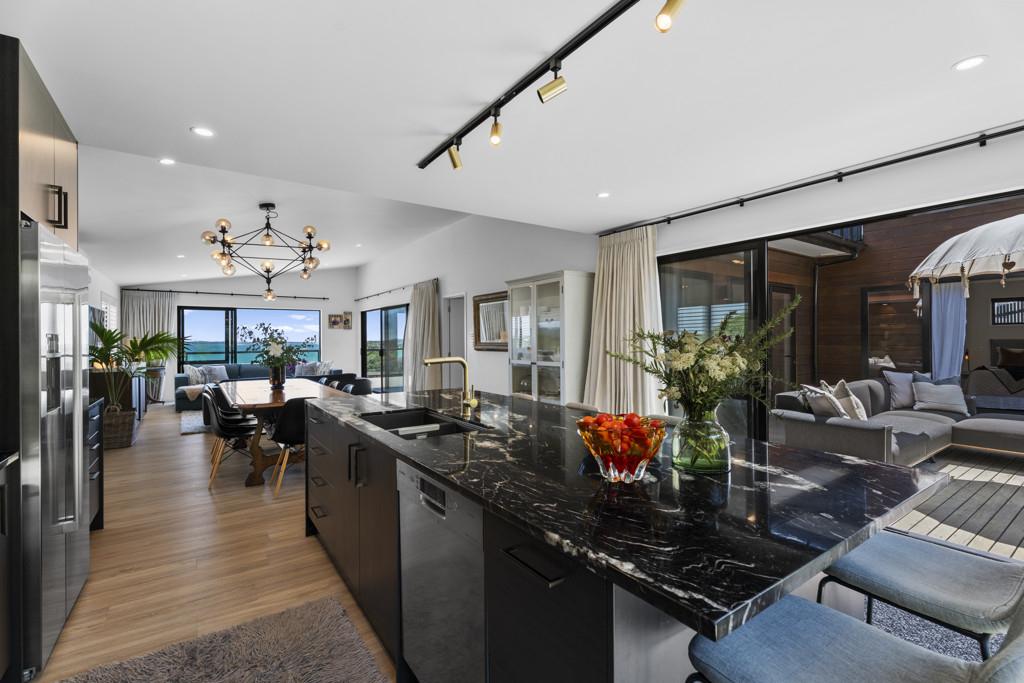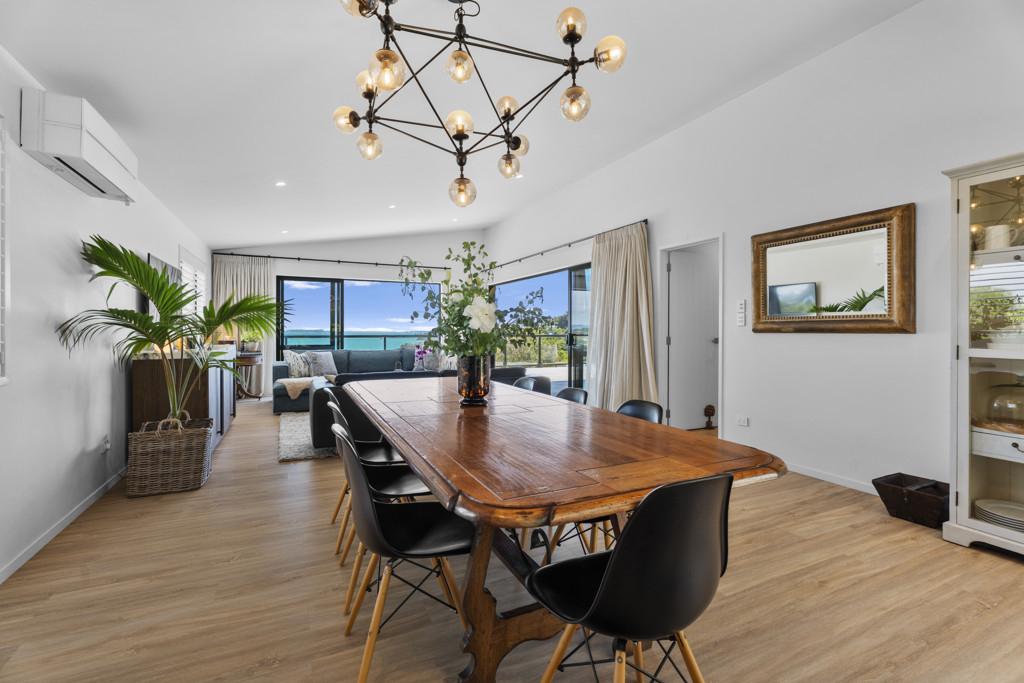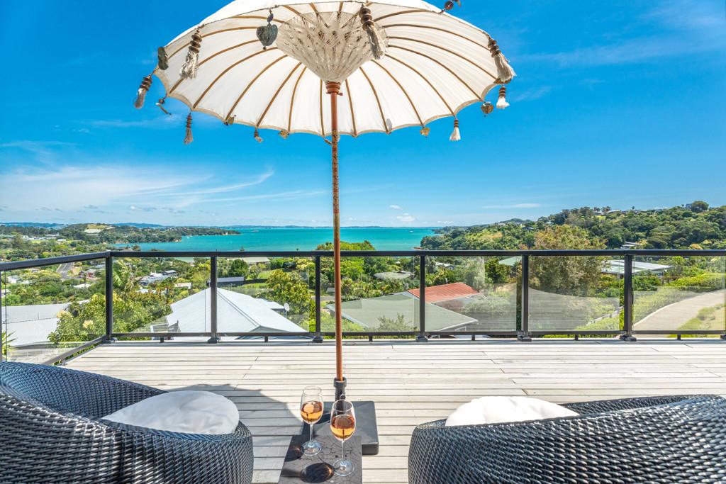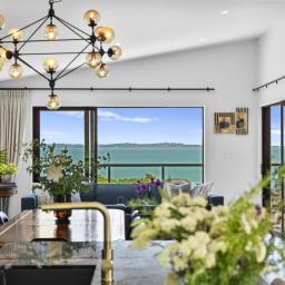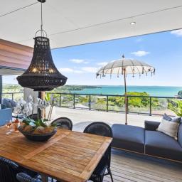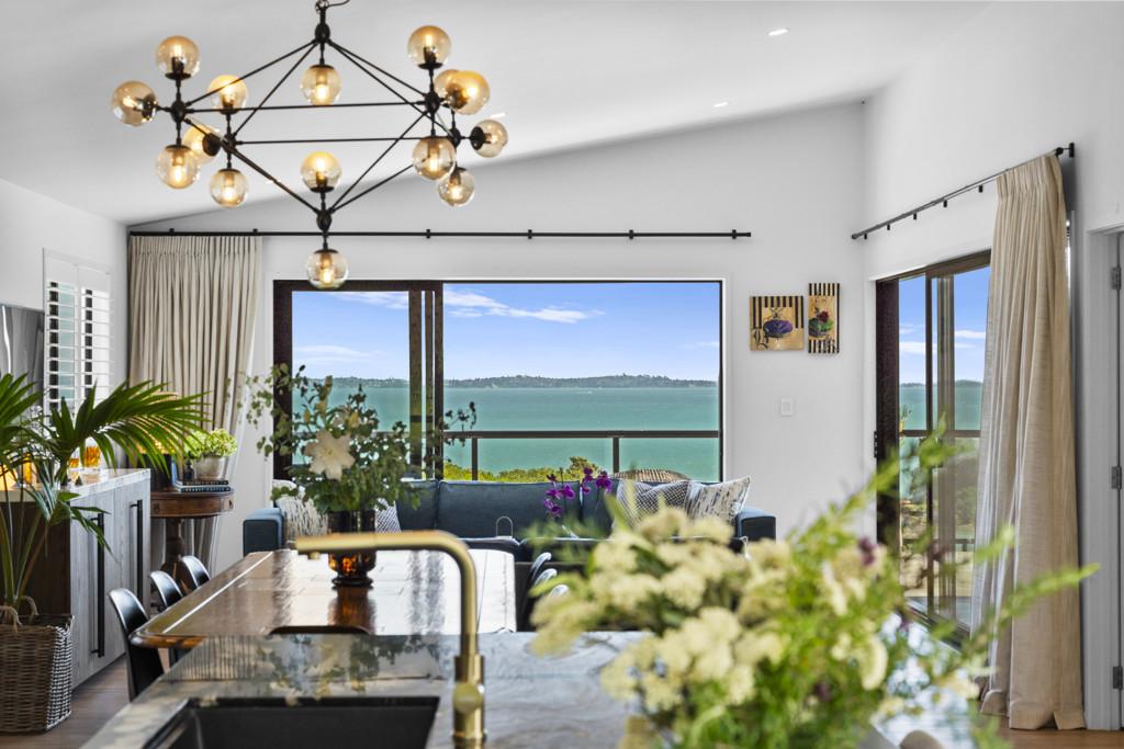 Perched high above the bay, this residence enjoys an elevated vantage point that keeps you above the fray and well clear of neighbours. It's a private sanctuary with the thrill of feeling like you're on a boat, reading the horizon from your 104m2 decks, framed by sweeping elevated sea views that stretch from the bay back to Auckland.