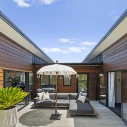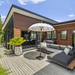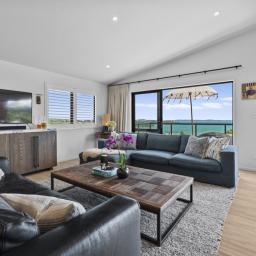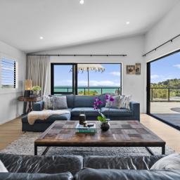 The location is ideal: stroll to Little Oneroa, or a bit further, to Oneroa Village with its shops and restaurants, all close by. The car ferry is a mere 5 minutes away, and public transport offers effortless weekend escapes or daily commutes. This elevated home blends modern comforts with Waiheke's iconic coastal charm, delivering bright, open-plan living with impressive indoor-outdoor flow. The sea views frame unforgettable Auckland sunsets.