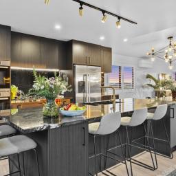 Granite kitchen benches and Bosch appliances, two ovens, a dishwasher, and a range hood - combine luxury with practical everyday use, perfect for after-work dinners or weekend gatherings with friends and family.