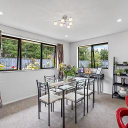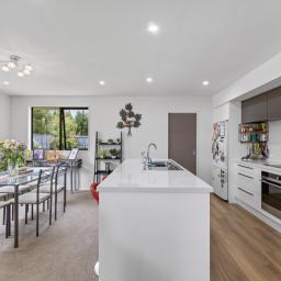 Inside, the open-plan kitchen, living, and dining area forms the heart of the home. The kitchen is well designed with a walk-in pantry and great bench space, making everyday living and entertaining effortless. Large windows fill the space with natural light, creating a warm and inviting hub for family life.
