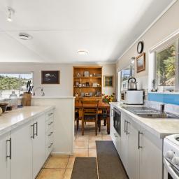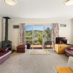 The open-plan lounge, dining, and kitchen create a comfortable and welcoming hub of the home, perfect for relaxed everyday living. A ranch slider opens out to the deck where you can unwind at the end of the day and enjoy watching the sun set over the valley - a lovely spot for a quiet drink or morning coffee.