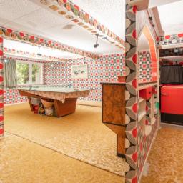 Downstairs has a fabulous big retro games room with a built-in bar your friends are going to love! You will also find the fifth bedroom with glass sliders, ensuite, a living area, and a workspace.