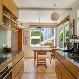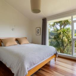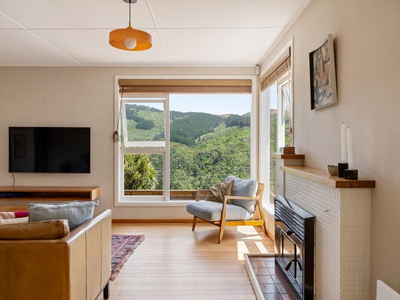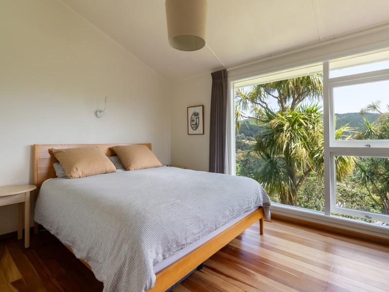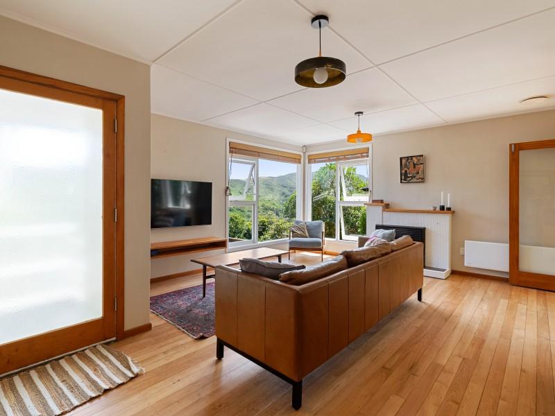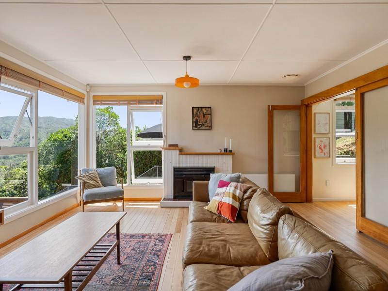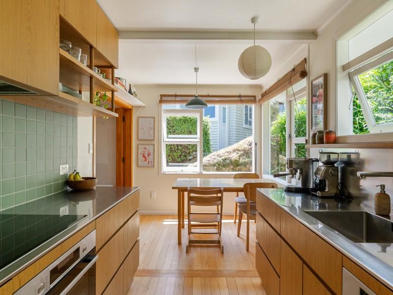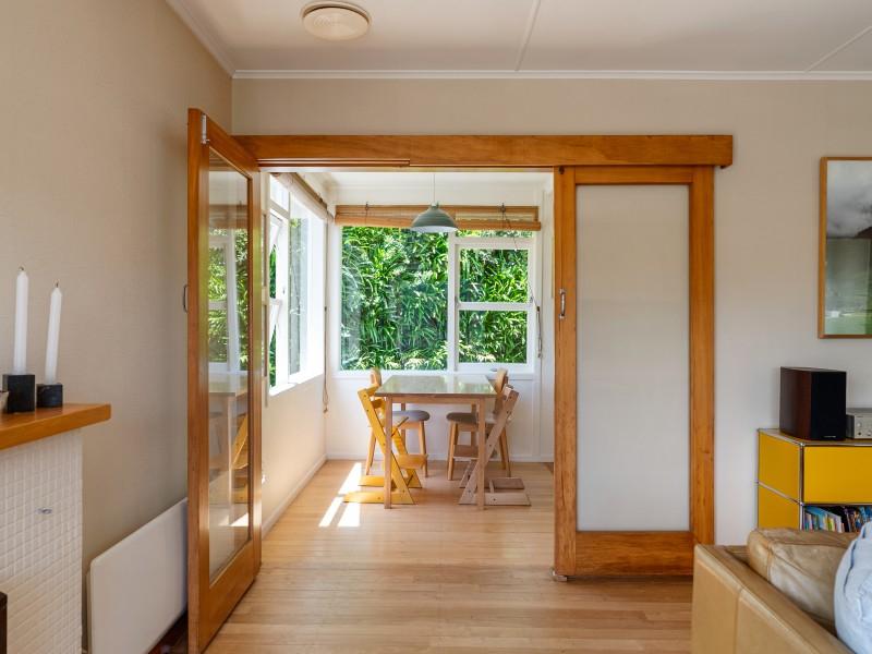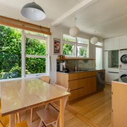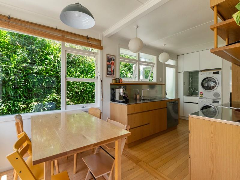Open flow between the kitchen, dining and lounge, with amazing lush green views through large windows out to Otari-Wilton's Bush Reserve.
