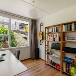 3 bedrooms, or 2 plus study. The master also has large windows and faces north-west for the sun & views.