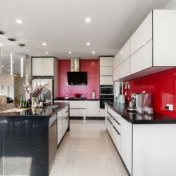 • A bespoke, high-end kitchen featuring premium stone benchtops, designer cabinetry and quality appliances - ideal for culinary pursuits and social gatherings.