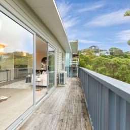 - Open-plan kitchen, dining, and living flowing to a sunny deck