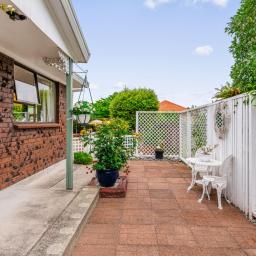 The home features a spacious open-plan living area, a well-equipped kitchen, and two generous bedrooms, while the private courtyard at the rear provides a peaceful outdoor retreat-ideal for relaxing or entertaining in the sun.
