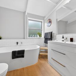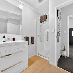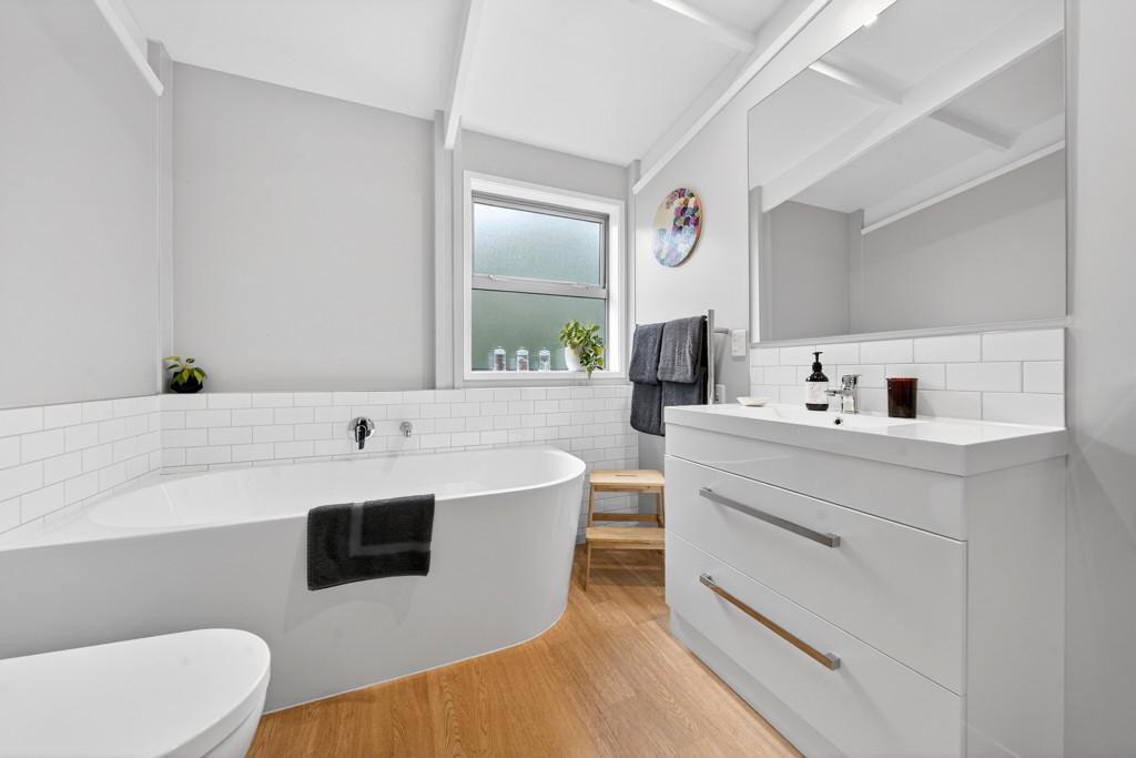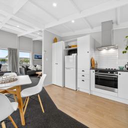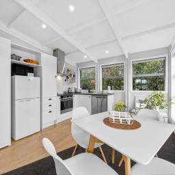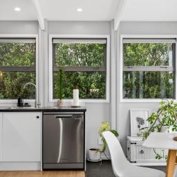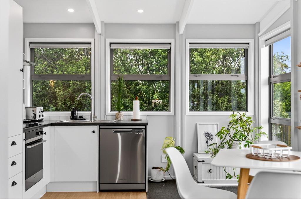 The home captures a sense of modern touch with classic white subway tiling flowing through the kitchen and bathroom, creating a fresh, timeless aesthetic that never goes out of style. The kitchen comes complete with Fisher and Paykel appliances, ready for everything from morning coffee to hosting dinner with friends.