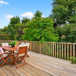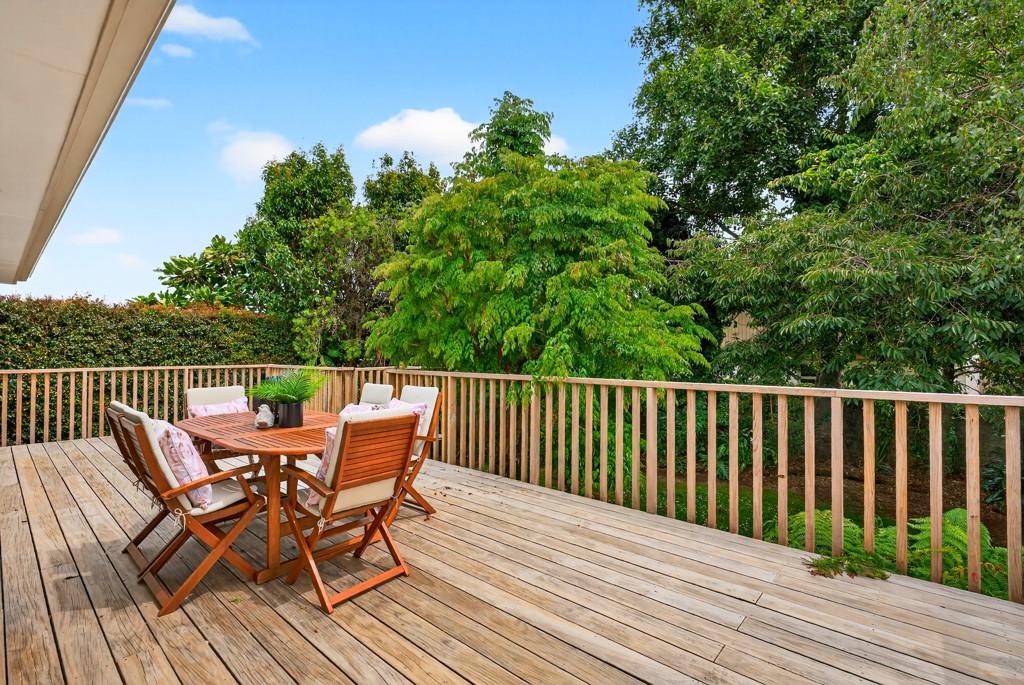 • Sliding doors opening to an elevated deck overlooking a beautifully established, private garden and large lawn