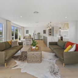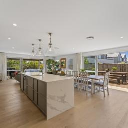 Open the ranch sliders and enjoy seamless indoor-outdoor living in the automatic alfresco area, complete with pull down shades. This creates a sheltered and inviting space that can be enjoyed no matter the weather, ideal for summer barbecues, relaxed weekend brunches, or evening drinks with friends.