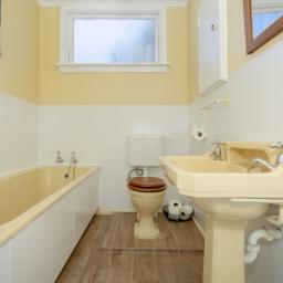 Upstairs, two light-filled double bedrooms with wardrobes enjoy the elevated outlook, along with the family bathroom servicing this level.