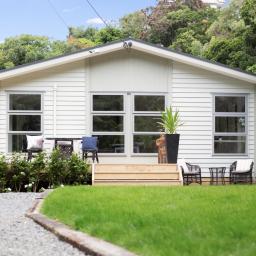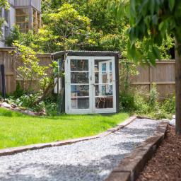 • Large sunny decks with flat lawn, landscaped garden with potting shed and barbecue patio