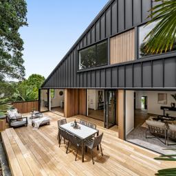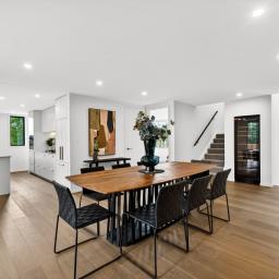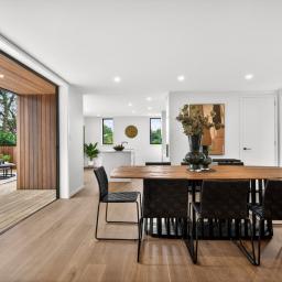 Living and entertaining unfold across multiple zones, anchored by a generous open-plan heart that connects seamlessly to a sun-washed deck framed by greenery. It's a setting designed for long lunches, relaxed evenings, and the kind of everyday living that feels both easy and elevated.