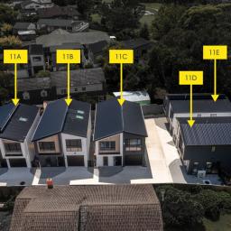 Practical features include a single internal-access garage incorporating the laundry and under-stair storage, along with additional off-street parking. Notably, 11D benefits from two extra off-street car parks, providing exceptional convenience for families or guests.