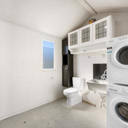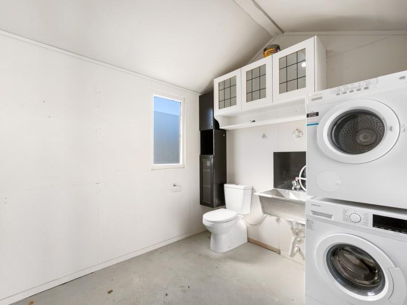 Outside, the property continues to impress. The section is well set up with irrigation, established planting and space to enjoy without feeling high maintenance. An external laundry also incorporates a second, separate toilet, adding extra convenience. There’s a container for additional storage and a separate external office, ideal for working from home, hobbies or more.