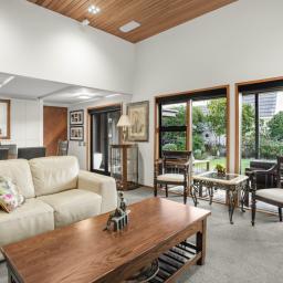 The expansive floor plan includes four generous bedrooms, two living areas, a family bathroom and two ensuites. Two garages offer exceptional convenience and storage, a rare luxury in central Hutt. Above them, a versatile loft room, currently used as a gym and rumpus, adds flexibility for modern family living.