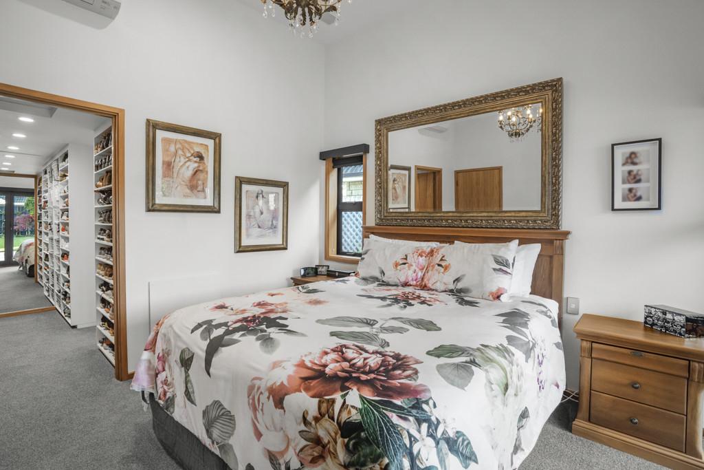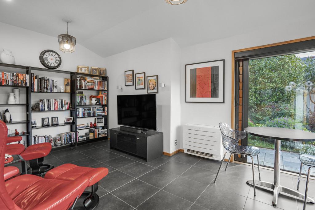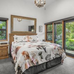 The master suite is a private sanctuary, complete with double doors flowing to the garden, a walk-in wardrobe with bespoke joinery, and an ensuite with underfloor heating. Year-round comfort is assured with five heat pumps, two gas fires and double glazing throughout.
