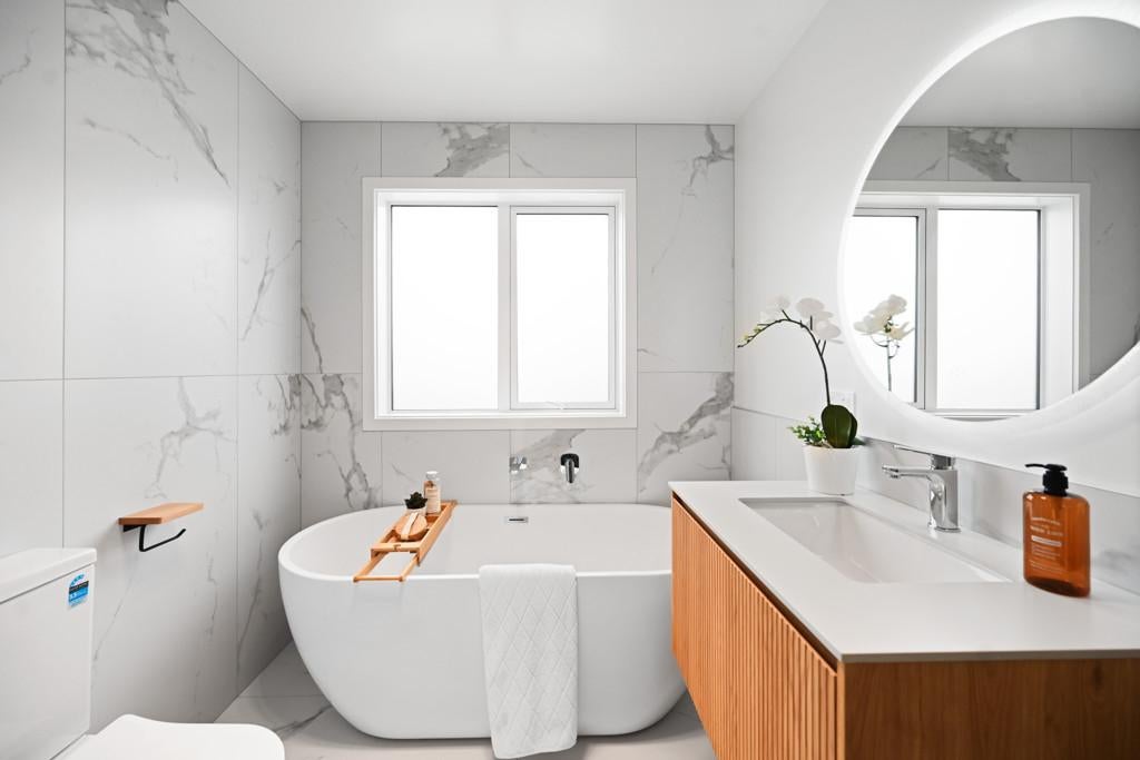 A dedicated downstairs office provides the perfect retreat for working from home or unwinding with a good book. Upstairs, the luxurious master suite offers a private sanctuary with a sumptuous ensuite, walk-in robe, and oversized window to capture the views. Two additional bedrooms share a beautifully appointed family bathroom featuring a statement bath, while the convenience of a third toilet downstairs adds to the home's functionality.
