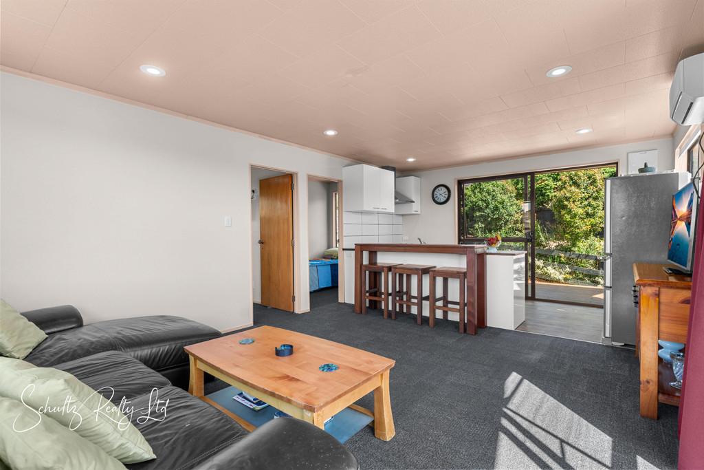 Slightly elevated, the home enjoys a pleasant outlook and a sense of privacy, while still being easily accessible. Inside, you'll find two comfortable bedrooms and a well-appointed bathroom, with a practical layout that makes the most of the available space. The living area is light and welcoming, creating a warm environment to relax or entertain, and the home has clearly been well cared for over time.