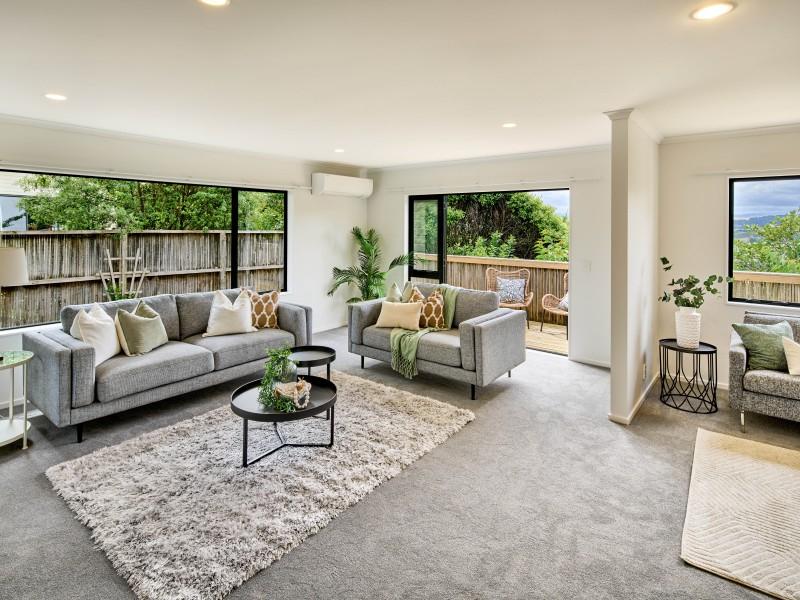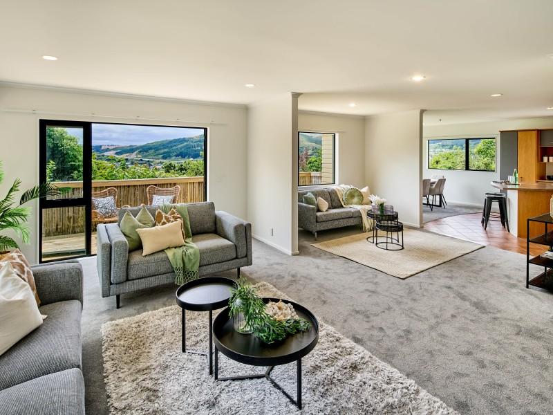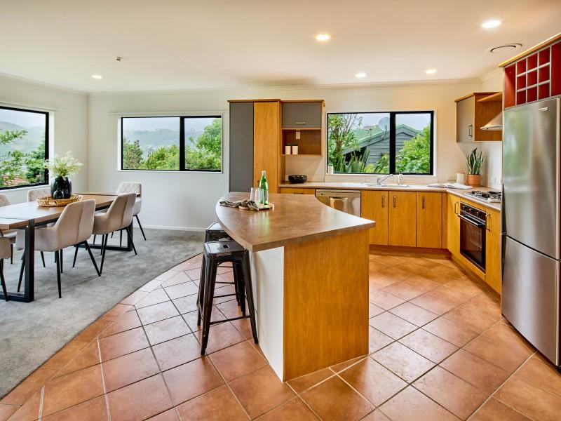 - Excellent flow to a north-facing deck capturing all-day sun and expansive views stretching to Titahi Bay, ideal for hosting family and friends
