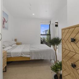 • The generous double bedroom offers a peaceful retreat, complete with stylish home decor, ample storage, and a heat pump for comfort