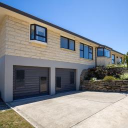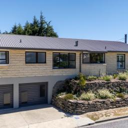 Outside, curb appeal is striking, with elegant schist retaining walls and newly planted gardens that are already flourishing. The property sits on an elevated corner site, offering a pleasant outlook, plenty of natural light, and privacy from neighbors. A spacious double garage provides ample storage and parking.