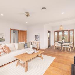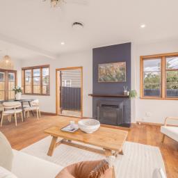 Inside, classic charm is immediately evident, enhanced by comprehensive renovations including re-wiring, re-plumbing and a new roof, providing peace of mind for years to come. Tastefully decorated throughout, the HOME basks in an abundance of light and feels warm, welcoming and effortlessly stylish. The living area is exceptionally spacious and highly practical, making it ideal for a growing family or those who love to relax and entertain. The kitchen and bathroom are true highlights, with the fully tiled bathroom featuring a luxurious claw-footed bath — a delightful nod to the HOME's heritage.
