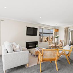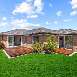 With two living areas, the home offers flexibility for busy households, while a gas fire anchors the main living space. Sliding doors open to a sunny deck, creating effortless indoor-outdoor flow. The kitchen is well set up with a large breakfast island and walk-in pantry, and a separate toilet adds everyday convenience.