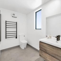 Comfort is assured year-round with double glazing, a heat pump, wood burner with wetback, and HRV system. Tiled floors in the bathrooms, kitchen and entry add a touch of elegance and practicality.