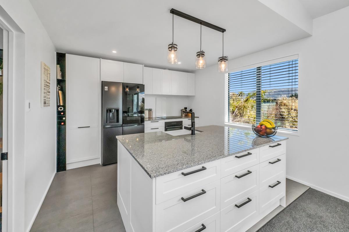 The heart of this property is a well-appointed 3-bedroom, 2-bathroom home designed for relaxed family living. Enjoy open plan living with the new kitchen flowing seamlessly into dining and living areas that open onto a sun-drenched deck. The kitchen boasts granite benchtops and a double island with a timeless butlers sink. With induction cooktop, under bench oven and dishwasher – perfect for aspiring chefs and entertainers alike.