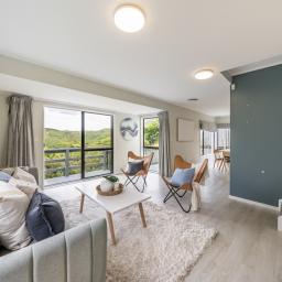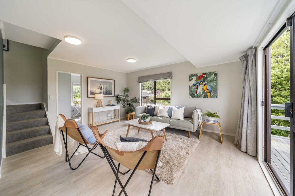 The open-plan kitchen, dining, and living area is designed for easy living and entertaining, flowing seamlessly to a large deck where you can enjoy all-day sun and stunning views across the Karori hills, right through to the last of the evening light.