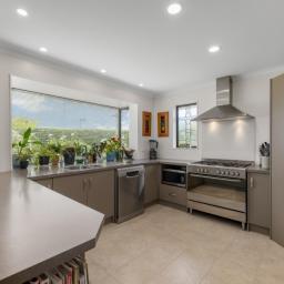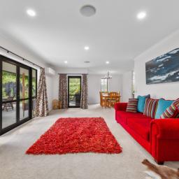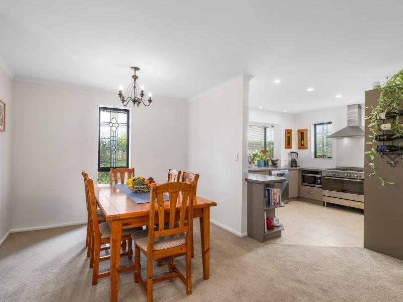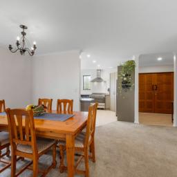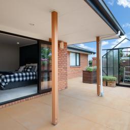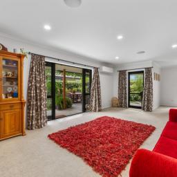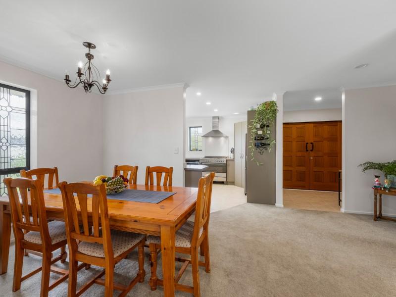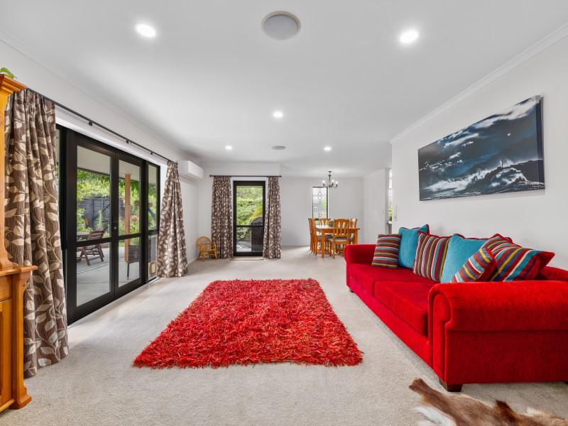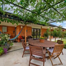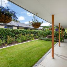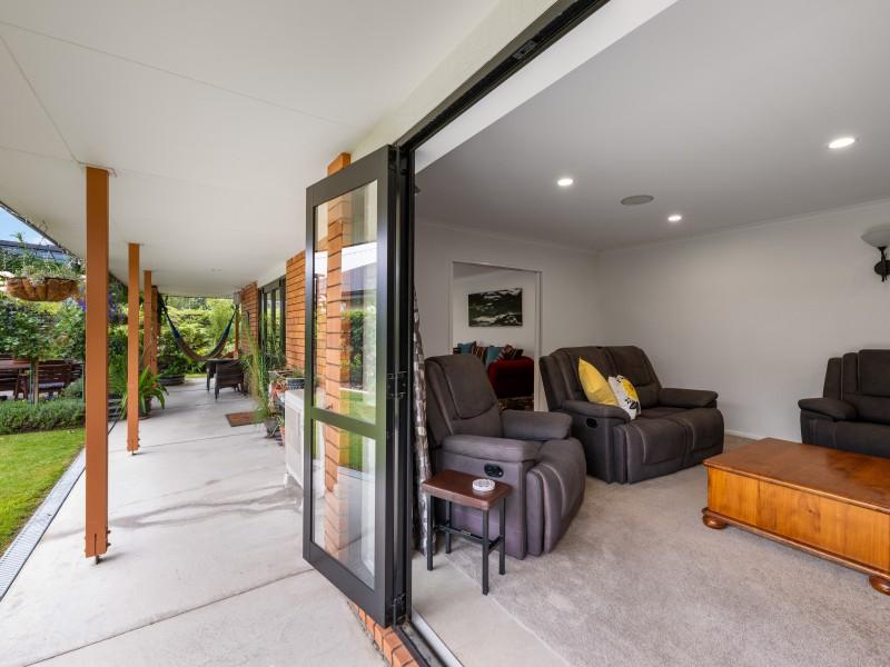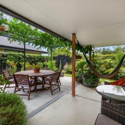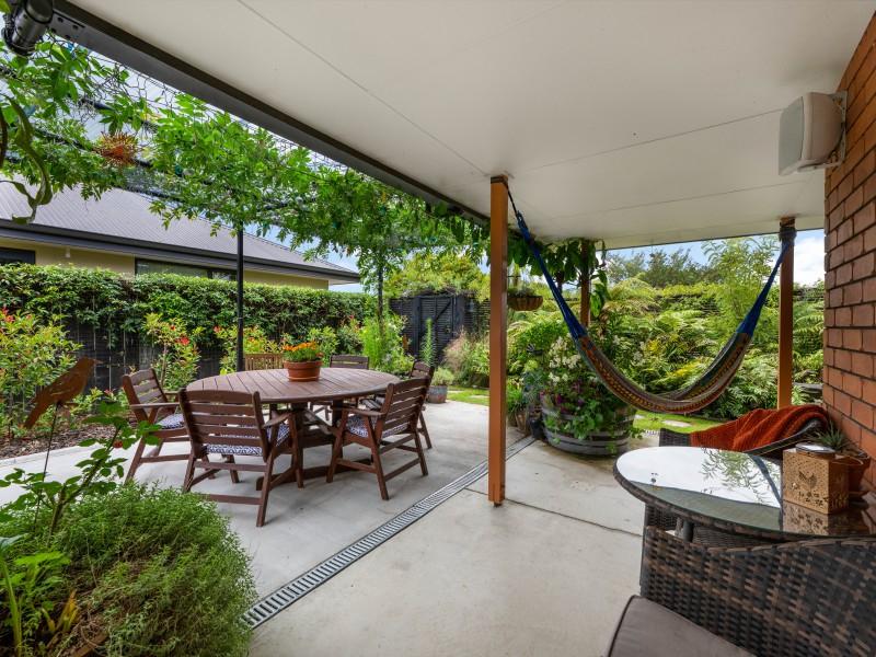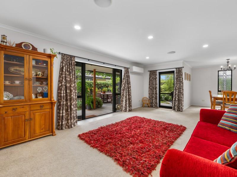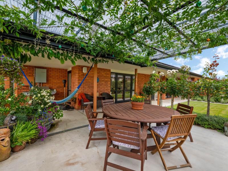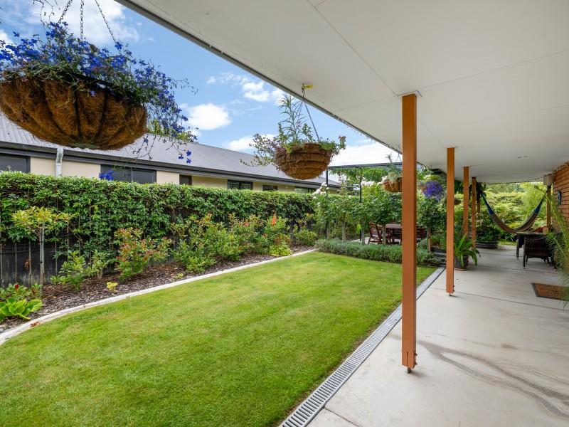 Living here works because the layout makes sense. There’s a proper dining space that knows its job and two very large living areas with one that can be closed off when needed. Both connect outdoors through French doors to a sheltered patio and archgola, creating a natural flow for entertaining. It’s private out here — the kind of space where you forget the rest of the world exists. A water feature adds movement and sound, while the fernery softens everything around it.