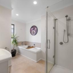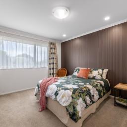 The house is generous in every sense - four genuinely large bedrooms mean no one is compromising. The master sits apart as its own retreat: extra spacious, with a walk-in robe, ensuite and French doors that open straight onto a brick-walled patio. The remaining bedrooms all have wardrobes and their own personality, helped along by thoughtful feature walls rather than blank uniformity.