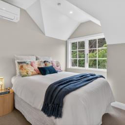 - Three upstairs bedrooms, all fitted with heat pumps